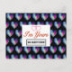 This fun post card is perfect for Valentine's Day, anniversaries or just to let that special someone know you care. The background design features a pattern of blue and pink tie dyed hearts. In the centre there's a white box with artwork that reads, "I'm Yours-NO REFUNDS!" On the back of the postcard there is a smaller version of the tie dyed heart next to the return address. Also there are ruled lines on the back for an address. The background colour can be customized.