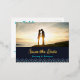 Enregistrez la carte postale date avec espace pour la photo et a un élégant arrière - plan bleu. Personnaliser.
