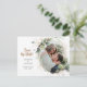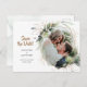 Téléchargez votre propre photo ! Ce design bohème Save The Date est un mélange fantastique de feuillage aquarelle, de touches d'or faux et de lettres exquises. Cette carte permet aux épouses occupées de gagner un temps précieux de préparation de mariage tout en leur donnant la conception de leurs rêves. CLEO est le plus beau des motifs pastoraux, avec une flore dainty dépeinte dans des coups de pinceau complexes et magnifiquement complétée par les élégantes fleurs de la police de style calligraphie. Des feuilles bleu-vert doux, des bourgeons terre aux tons olive et un soupçon de faux or luxueux se combinent pour créer une invitation à un mariage boho teinté contemporain. C'est "celui" si votre thème mariage est décontracté, bio, légèrement rustique. Quant à la romance, elle est tout à fait évidente dans ce design significatif et éthérée. La couronne de feuillage peinte à la main encercle votre photo, symbolisant votre amour sans fin et les anneaux que vous allez porter. Votre message et les détails importants de votre lieu/date sont clairement présentés, ce qui les rend faciles à lire et à retenir pour les clients. Ces invitations de mariage bohème sont quelque chose à chérir ; elles font de merveilleux cadeaux pour tous ceux qui partagent le jour le plus heureux de votre vie.