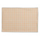 "Image of a rectangular placemat with a simple checkered pattern in orange and white. The texture appears smooth and the design is the same on both front and back."