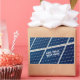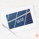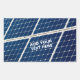 Closeup view of a solar power panel. Sunny day. Blue and white colours. Customizable sticker for anyone. You can change or delete the template text.