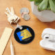 A fun image of apes head in profile, with big grin. Yellow and brown colours, blue background. Created by Mickeys Art And Design.Biz
