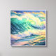 This image is a highly vibrant and dynamic digital painting of a large, curling ocean wave at sea, likely during sunrise or sunset.