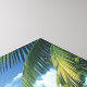 The image depicts a serene tropical beach scene. In the foreground, a cluster of vibrant red flowers and lush green leaves frame the view. The beach stretches out with soft, white sand and gentle waves lapping at the shore. The turquoise water of the ocean shimmers under a clear blue sky dotted with fluffy white clouds. Several palm trees with swaying fronds line the beach, providing shade and a touch of exotic beauty. In the distance, a charming wooden bungalow stands on stilts over the water, inviting relaxation and tranquillity. The overall atmosphere is one of peace and natural beauty, capturing the essence of a tropical paradise.