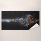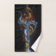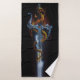 Un petit dragon rouge assis sur une épée avec sa queue enroulée autour d'une épée.