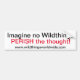 L'autocollant de pare-chocs "Imagine" dit tout. Acheter "Imaginez pas de choses sauvages" avec 25% des ventes faites aux organismes de protection des animaux. Aidez à faire la différence. Pour ADOPT et/ou DONNER à un animal en danger, consultez les liens sur la page d'accueil à l'adresse www.wildthingsworldwide.com.