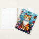 Cat themed personalized planner. A cute orange cat sitting in flowers and surrounded by butterflies. The art is in an impasto oil paper quilling style.