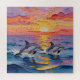 An ai impasto style dolphins swimming with a pink, orange and purple sunset over the ocean . A beautiful coastal puzzle to take you away to a beautiful tropical scene.