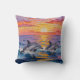 An ai impasto style dolphins swimming with a pink, orange and purple sunset over the ocean . A beautiful coastal throw pillow for your beach home or beachy styled home.