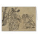 Le dessin montre l'impératrice Jingū portant un grand arc suivi de Takenouchi Tsukune probablement pendant la conquête de la Corée circa des 1800s
