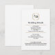 Complete your luxury wedding suite with the Imperial Luxe Wedding Enclosure Card, designed in our signature Modern Regal Minimalism style. This refined details insert features a centred imperial monogram emblem in soft metallic gold, paired with elegant high-contrast serif typography and clean modern body text on a crisp white background.