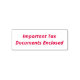 This self-inking stamp clearly marks documents with the message 'Important Tax Documents Enclosed.' Ideal for accountants, tax professionals, and businesses, this stamp ensures that crucial paperwork is easily identified and organized. The bold, red text is highly visible, making it perfect for office use during tax season or any time of the year.