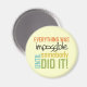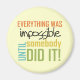 Multicolor text design reads "Everything Was Impossible Until Somebody Did It!" on inspirational T-shirts, buttons, cards, mugs, magnets, key chains, and other items great for teachers, coaches, parents, and anyone who inspires!