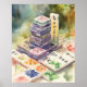 Joli mahjong aquarelle avec trois gravures originales de Nicole.