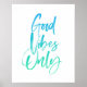 Good Vibes Seule l'impression d'affiches de typographie présente une typographie moderne lettrée à l'ombre bleue verte, une citation inspirante à accrocher sur votre mur. © Mini Moi Prints
