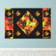 Cette belle toile d'oeillet Abstraite multicolore (60 X 40) utilise une photo originale de fleurs d'oeillets rouges, jaunes et oranges prises au Ted Ensley Gardens.