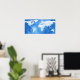 Carte du monde dans les tons bleu et blanc dans un style vintage grunge.