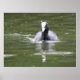 Cette impression présente une photo d'un Pied nageant sur une rivière marémotrice. Ce bel oiseau britannique est noir avec un bec blanc et un marquage sur la tête. Il s'agit d'une espèce commune, mais elle peut parfois être difficile à voir, car elle est plus pâle que d'autres oiseaux aquatiques.