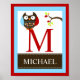 Impression de nom de Hibou Brun 8x10 (bordure roug