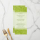 Paisley tourbillonne et fleurs en vert vif fait un motif magnifique pour cette carte de menu mariage. Le texte customisé s'imprime sur un panneau lumineux accentué par des bordures faisant écho au motif arrière - plan. Un joli ajout à n'importe quel mariage. Utilisez-le comme menu ou tout autre imprimé dont vous pourriez avoir besoin pour votre mariage, douche ou fête d'engagement. Customisez-le avec votre propre menu ou d'autres informations sur le devant et ajoutez votre nom et la date de l'événement ou des informations supplémentaires sur le menu au dos contre le même motif. Disponible en couleurs alternatives avec produits correspondants. com