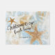 Ce Welcome Doormat a une belle empreinte d'étoiles de mer côtière avec une grosse et petite étoile de mer réaliste et plusieurs autres surimprimés en blanc sur arrière - plan bleu clair et Welcome dans une police de script. Recherchez d'autres produits dans cette collection de poissons-étoiles côtiers. Texte : Bienvenue À Notre Maison De Plage. Customiser votre nom de famille est facile à faire. Conception de Jenn's Emporium.