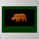 Un animal imprimé en bois comme du rhinocéros dans une couleur arrière - plan verte personnalisable, écrit "rhinocéros". Vous pouvez changer (customiser) la couleur pour correspondre à votre décor maison