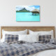Impression de toile de paysage d'une luxueuse station balnéaire en lune de miel sur l'eau dans le lagon bleu tropical de l'île pacifique de Bora Bora, près de Tahiti, en Polynésie française.