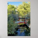 Le paisible pont rouge au-dessus d'un étang dans un ancien site d'extraction de phosphate que le propriétaire a converti en piscines de réflexion paisibles dans un jardin zen.
