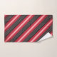 Ce design crée un visuel profond, luxueux et légèrement vintage en mélangeant en douceur un jeu de rayures à motifs distincts avec des tons chauds de rose saumon, rouge, une touche de brun, et des teintes de rubis antique sur un arrière - plan noir étrange, offrant une allure d'élégance et de sophistication modernes, créant un design visuellement dynamique de serviette de bain accent.