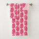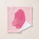Serviette sertie dans un motif imprimé en bloc, à base d'une coquille de pétoncle, en rose fuchsia profonde sur un arrière - plan rose pastel
