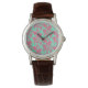 NewParkLane - Montre, avec une belle impression florale japonaise rétro : avec un motif de fleurs roses, contre un arrière - plan turquoise.