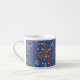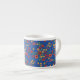 Une petite tasse à café Espresso chic, avec un joli motif à motifs floraux sur un arrière - plan bleu de la marine française. Faisant partie de la collection Posh & Painterly 'Granny Print', ce motif de collage de papier peint à la main peut être facilement ajusté pour s'adapter à n'importe quelle Mug.