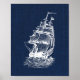 Navire de pirate nautique contre un arrière - plan de burlap bleu foncé. Un ajout parfait à toute salle à thème nautique.
