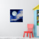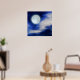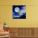 Moonscape print - design graphique mixte, numériquement montage photographique amélioré de la pleine lune, entouré d'un halo faible, contre un ciel bleu nuit profond et des nuages lune