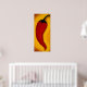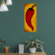 Impression d'une peinture acrylique originale à moi d'un poivre de chili rouge chaud sur un riche arrière - plan jaune doré. Une oeuvre d'art dynamique pour égayer n'importe quel endroit. Copyright peinture originale de Bridget Dedyuhina-Rymell