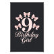 Celebrate her 9th birthday in style! Cute pink ribbon bows surround a bold ‘9’ with elegant cursive ‘Birthday Girl’ text. Soft colors and crisp design make this design perfect for parties and photos!