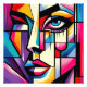 This stunning artwork features a modern abstract portrait of a young woman, beautifully blending vibrant colors and geometric shapes to create a captivating visual experience. The design showcases the elegance and beauty of femininity, with a floral background that enhances the overall aesthetic. Perfect for adding a touch of contemporary glamour to any space, this print is a must-have for those who appreciate artistic expression and trendy decor.