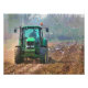 Préparation pour le next crop. The tractor plows (ploughs) the field and wild birds look for food in the freshly turned soil. Watercolor England.