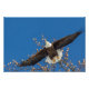 Un magnifique aigle chauve, photographié alors qu'il saute dans l'air d'un membre d'arbre.