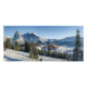 Photographie du paysage de l'Alpe di Siusi (Alm Seiser) avec la montagne des Dolomites de Sassolungo sous une couche de neige en hiver au Tyrol du Sud, Italie.