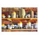 Un coup d'oeil à l'intérieur de la vaisselle du cuisinier de l'époque Tudor et victorienne. Plein de confitures, confitures, gelées et flagons de vin. Aquarelle. Angleterre.
