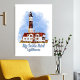Belle aquarelle représentant le phare de Big Sable Point dans le lac Michigan, Michigan, présentant sa structure emblématique entourée de ciel bleu avec un thème nautique. Parfait pour les voyages, l'architecture, l'art côtier et les concepts d'histoire maritime.