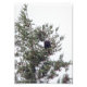 Photo d'un aigle à tête blanche américain dans un conifère dont les branches pendent de nombreux cônes de pin. L'aigle mature est perché sur un membre mince qui surveille le paysage. Le ciel est couvert d'un nuage gris clair, ce qui indique une température fraîche. Copyright ©2021 Kimberly J Tilley.