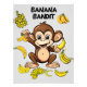Un singe coquin entouré de bananes et d'écorces, capturant le méfait et le plaisir dans tous les détails.