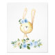 Impression Photo Bébé lapin, Animaux en bois, Boho, Fleurs bleues
