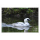 Nage de canard de mer ou de neiges noires et blanches Nager dans un lac. Le duvet, avec son aspect "glace craquelée" et "panda", est indéniable et semble très noir et blanc en vol. Les femelles et les mâles immatures sont des oiseaux gris avec le front et les couronnes de châtaignier, et peuvent être confondus à distance avec le canard roux; ils sont souvent appelés "roux" scie. Il a des taches d'ailes blanches ovales en vol. Le bec de scie a une pointe crochetée et des bords dentelés, qui l'aident à attraper des poissons lorsqu'il plonge pour eux.