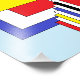 Cette oeuvre géométrique abstraite de Richard H. Fay présente un tableau de carrés dans les couleurs primaires du rouge, du bleu et du jaune, ainsi que du noir et du blanc.