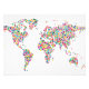 Carte du Monde faite à partir d'étoiles multicolores semi-transparentes, sur un arrière - plan blanc.