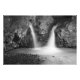 Photo en noir et blanc d'une petite cascade. La photo a été prise la nuit, dans un parc, dans la ville azoréenne de Ribeira Grande.
