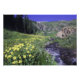 Cascade et fleurs sauvages dans la prairie alpine, Heartleaf Arnica, Arnica cordifolia, Ouray, San Juan Mountains, Rocky Mountains, Colorado, USA � Rolf Nussbaumer / DanitaDelimont.com